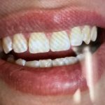 女性の患者様で前歯の隙間でいらしていただきました。接着療法をもちいて離れた歯を人工的エナメル質を接着させ審美性を整えます。