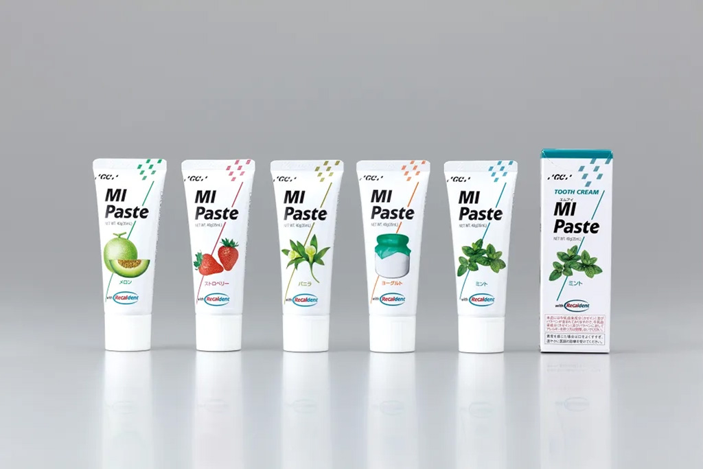 MIペーストは、カルシウムやリンなど豊富なミネラルと、お食事で酸性に傾いたお口の中の中和作用をもつCPP-ACP(リカルデント)を含んだ口腔ケア製品です。